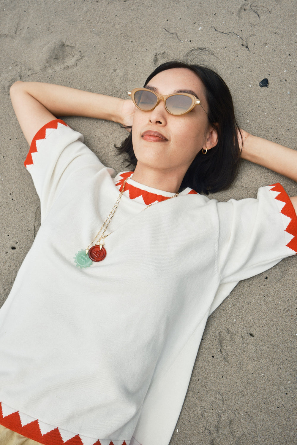 Zig Zag Appliqué Ivory/Poppy