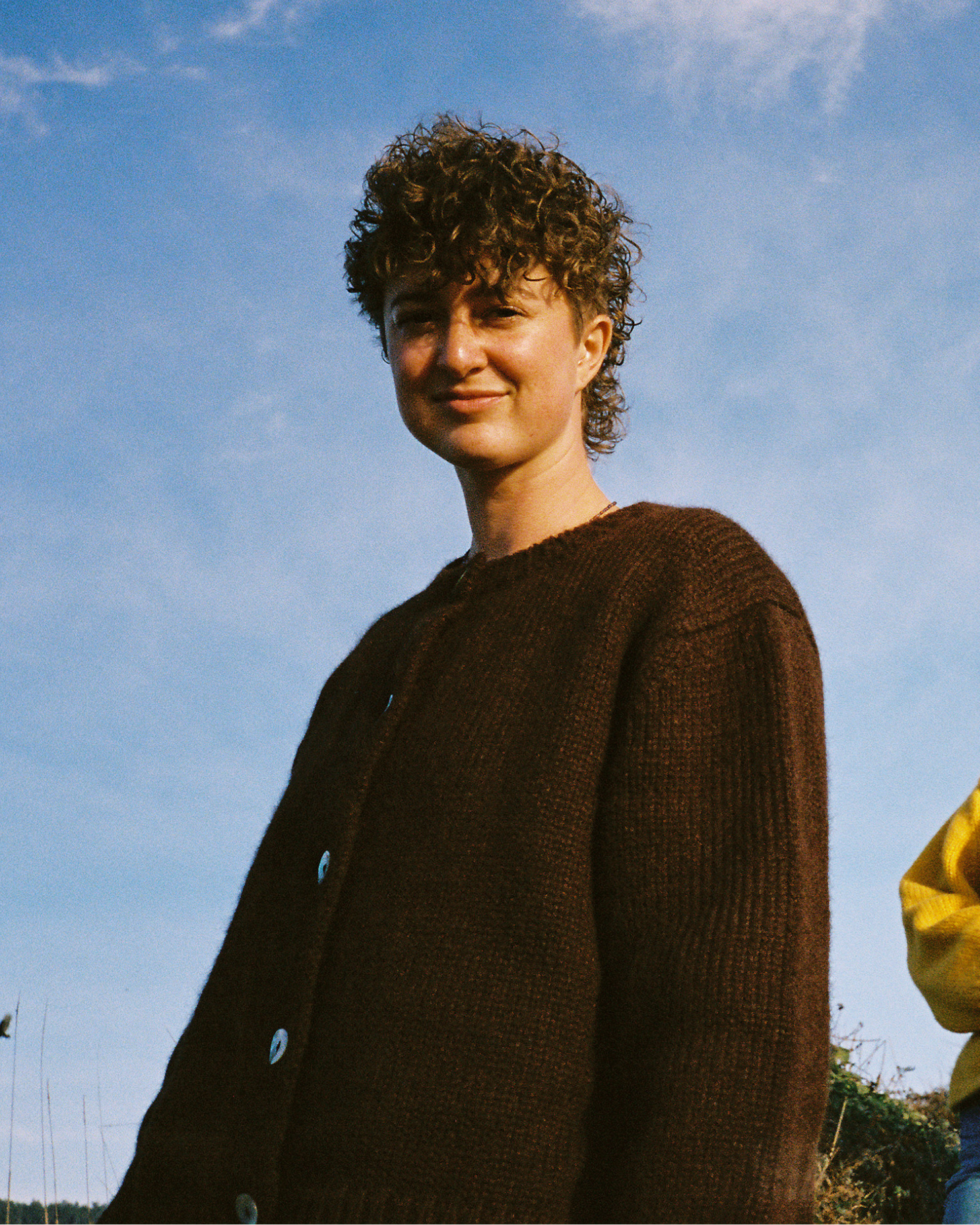 The chunky, slightly fuzzy Sheba Cardigan Sweater serves major grandma vibes in today’s modern color palette. Its relaxed, boxy fit makes it ideal for layering in the chilly months. Retro-inspired bracelet sleeve length for a slightly cropped sleeve.