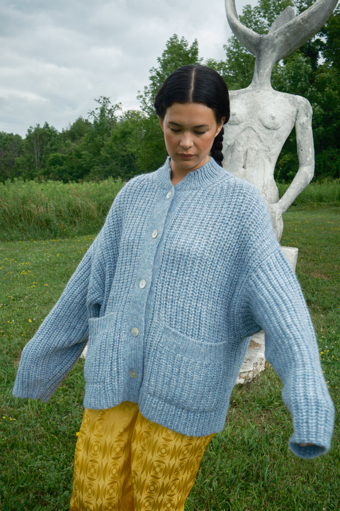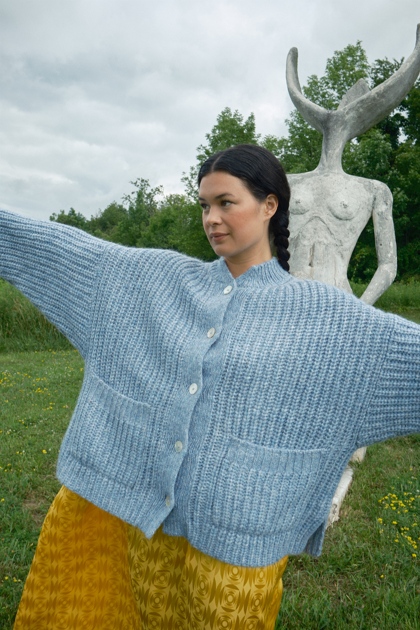 "Sybil is like the grandfather of Sheba- more oversized with roomy pockets and a chunky rib stitch throughout, and just as cozy!" - Nikki Chasin