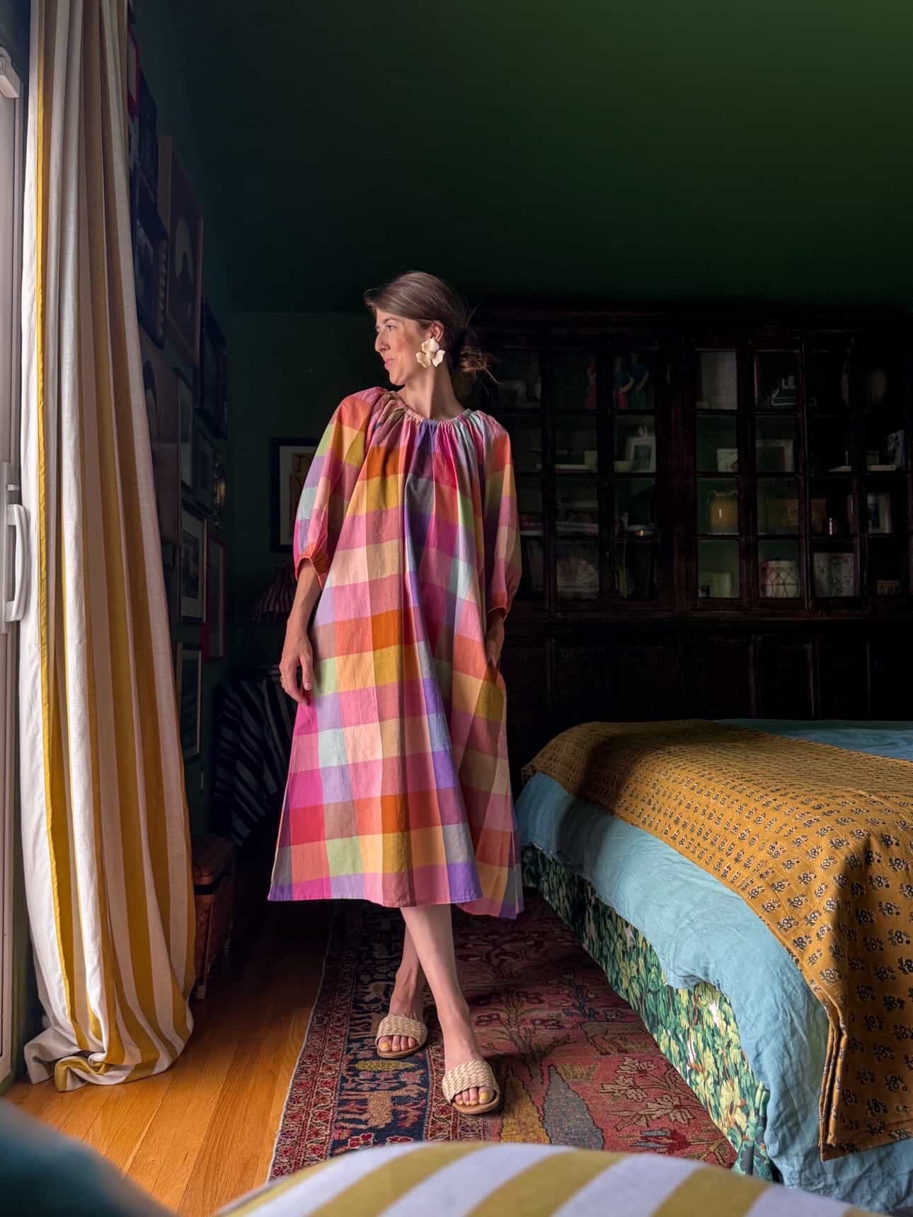 "The ballad dress has the most breezy, relaxed silhouette. And the gathers at the neckline make it feel so special. This dress is peak comfort."