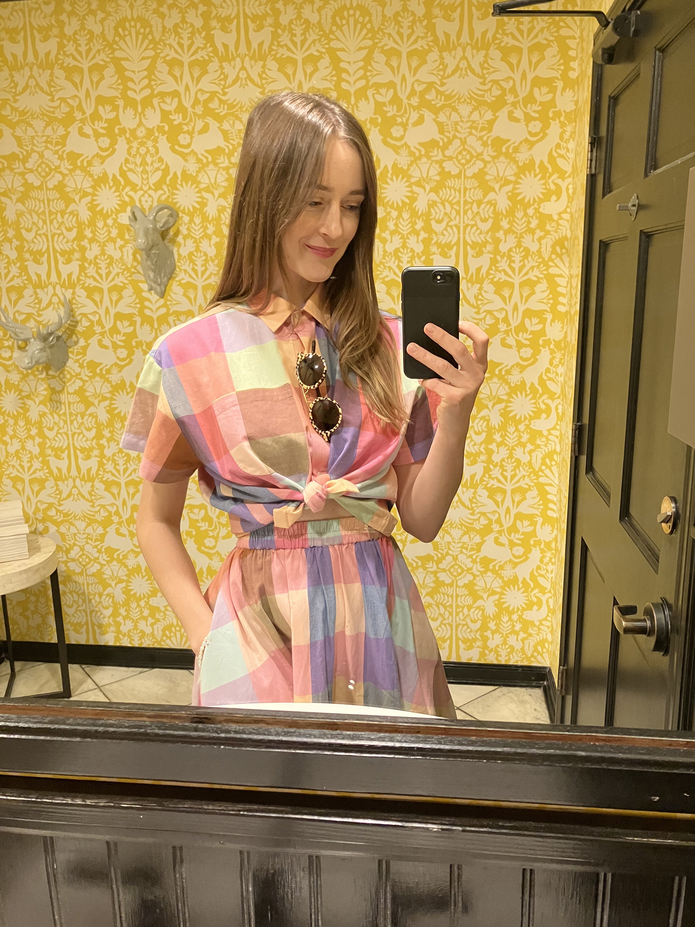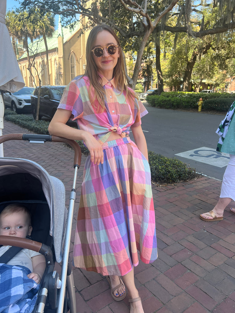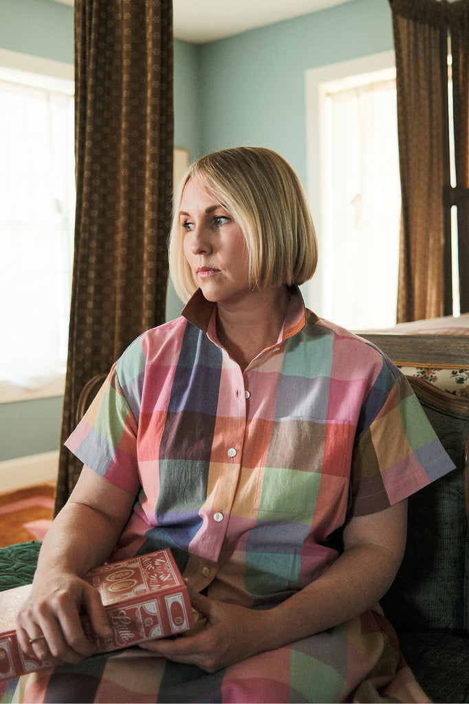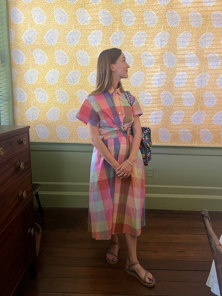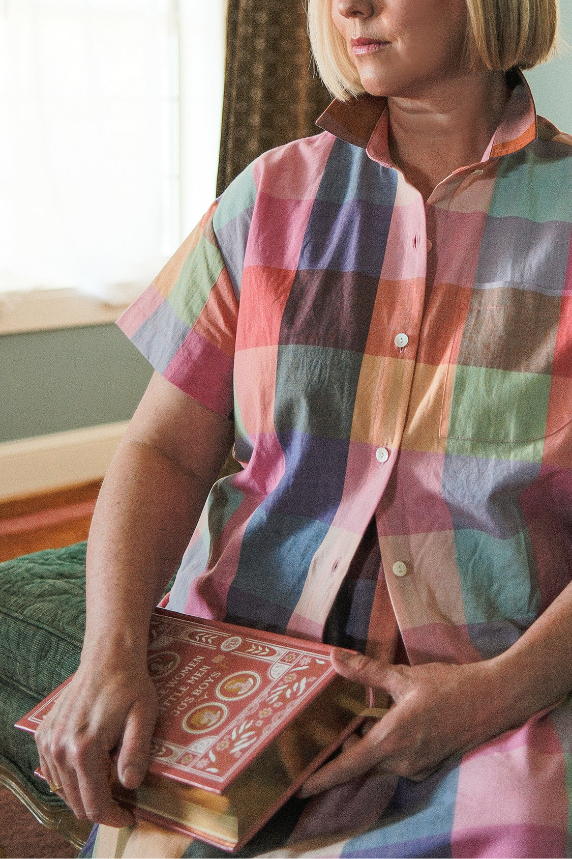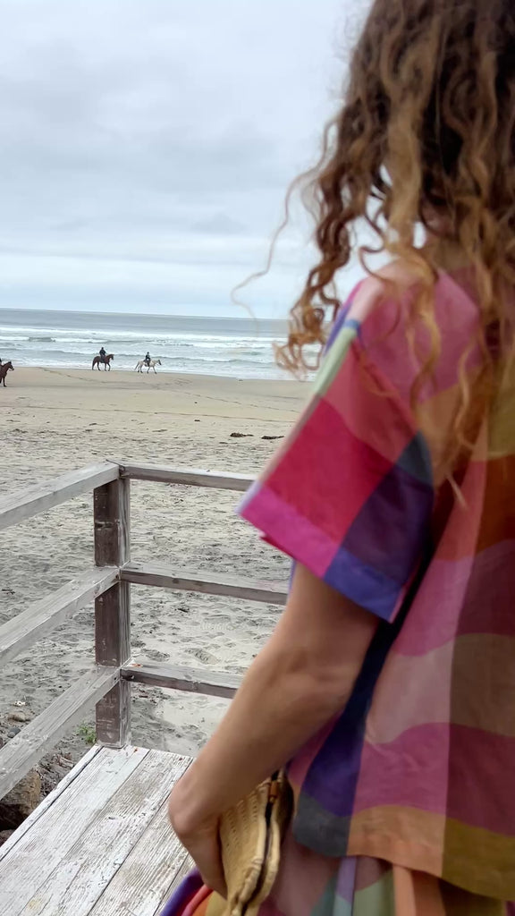We teamed up with our talented friends at The House That Lars Built to bring you an exclusive collaboration—seven classic Nikki Chasin pieces in four gorgeous The House That Lars Built-designed prints. The Midsommar Plaid print designed by The House That Lars Built produced by Fabelism is a twist on a classic madras print. It's especially warm because it has soft, pale pink threads woven throughout.