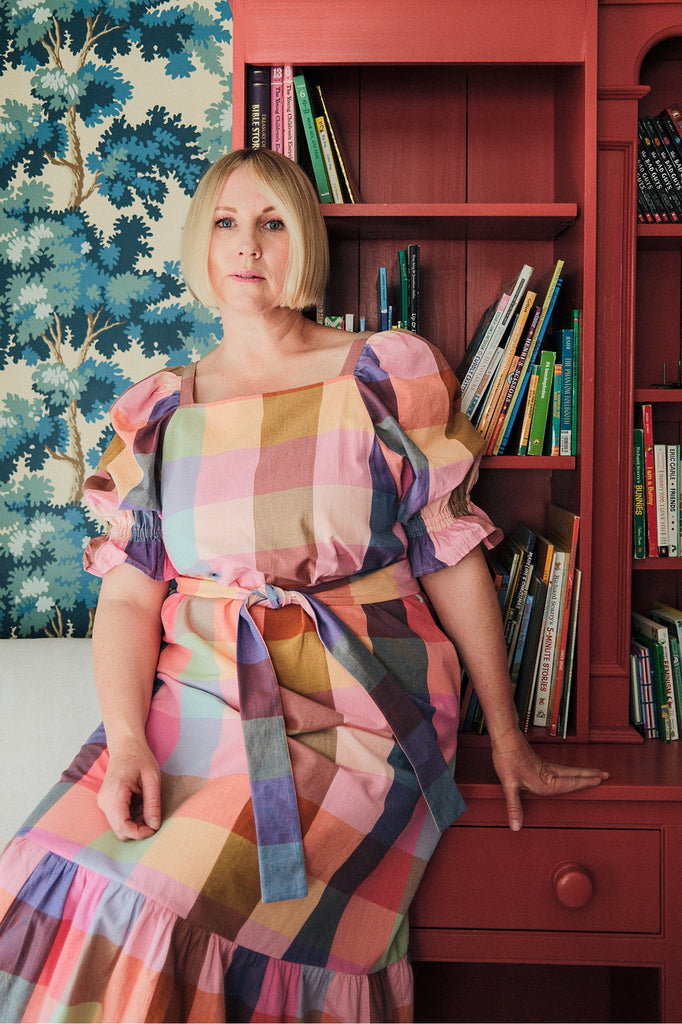 We teamed up with our talented friends at The House That Lars Built to bring you an exclusive capsule collection—seven classic Nikki Chasin pieces in four gorgeous The House That Lars Built-designed prints. The Midsommar Plaid print designed by The House That Lars Built produced by Fabelism is a twist on a classic madras print. It's especially warm because it has soft, pale pink threads woven throughout.