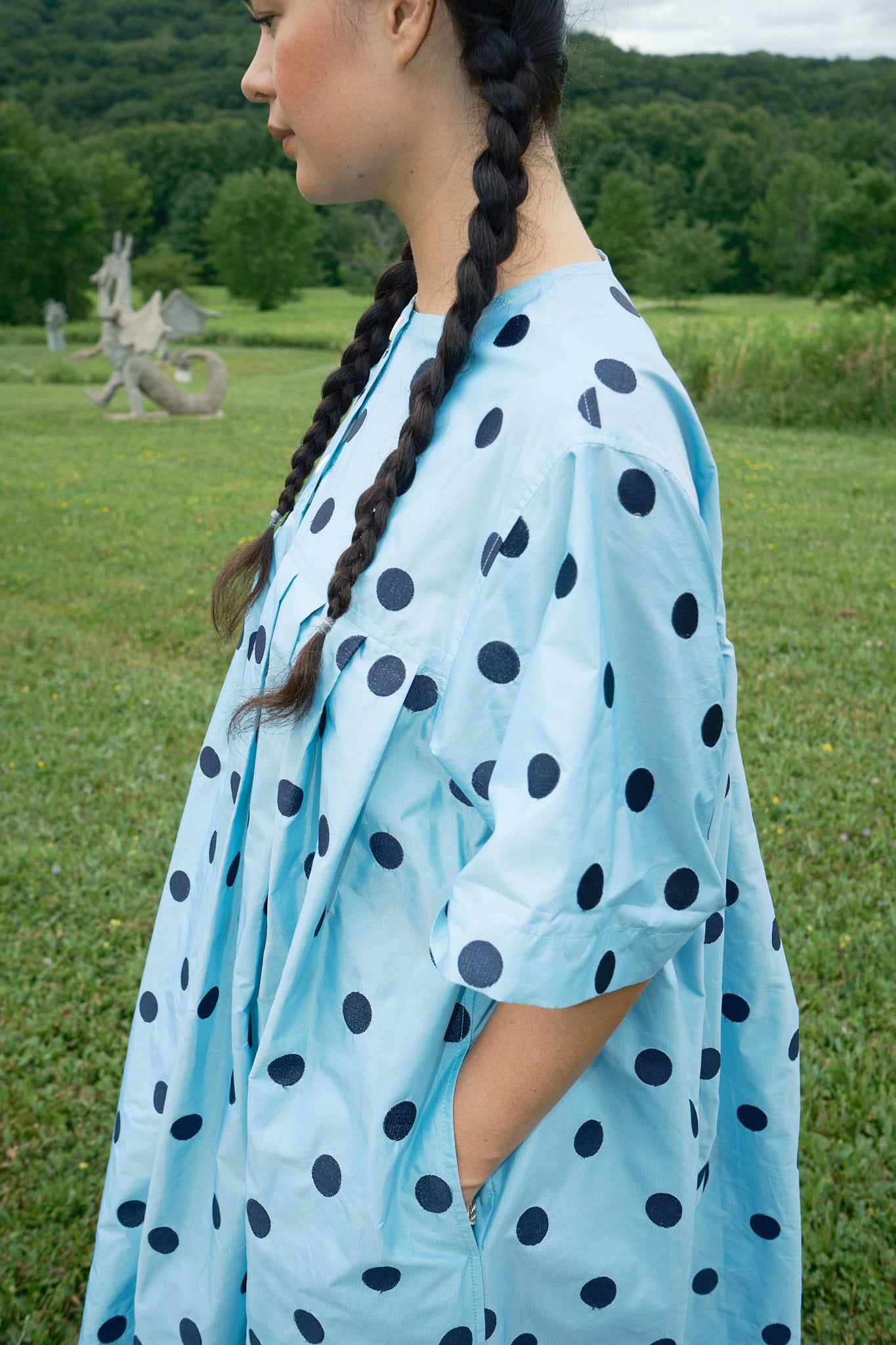 There’s also a nice story behind it. When one of our favorite local Hudson stores, Bolor, sadly closed, the lovely owner/designer Enky lent us the pattern for this jumpsuit. So a piece of Hudson history lives on.