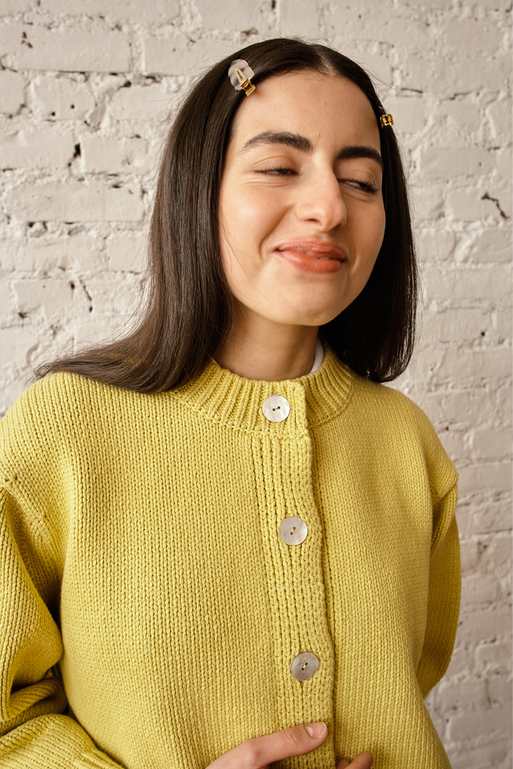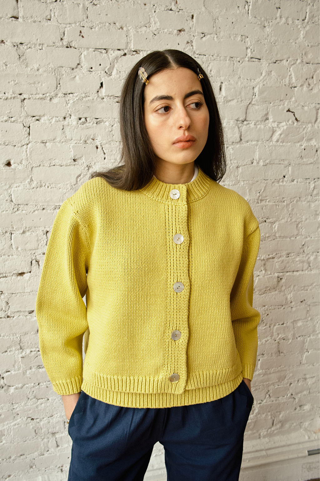 The 100% cotton version of our best-selling winter Sheba Cardigan, the Shiloh Cotton Cardigan is here. The Shiloh maintains the structure and chunkiness you all love so much, but in a suitable fabric for the warmer-weather seasons. Yes, you can look chic in a chunky sweater year-round without breaking into a sweat. To us, sweater season is a state of mind.
