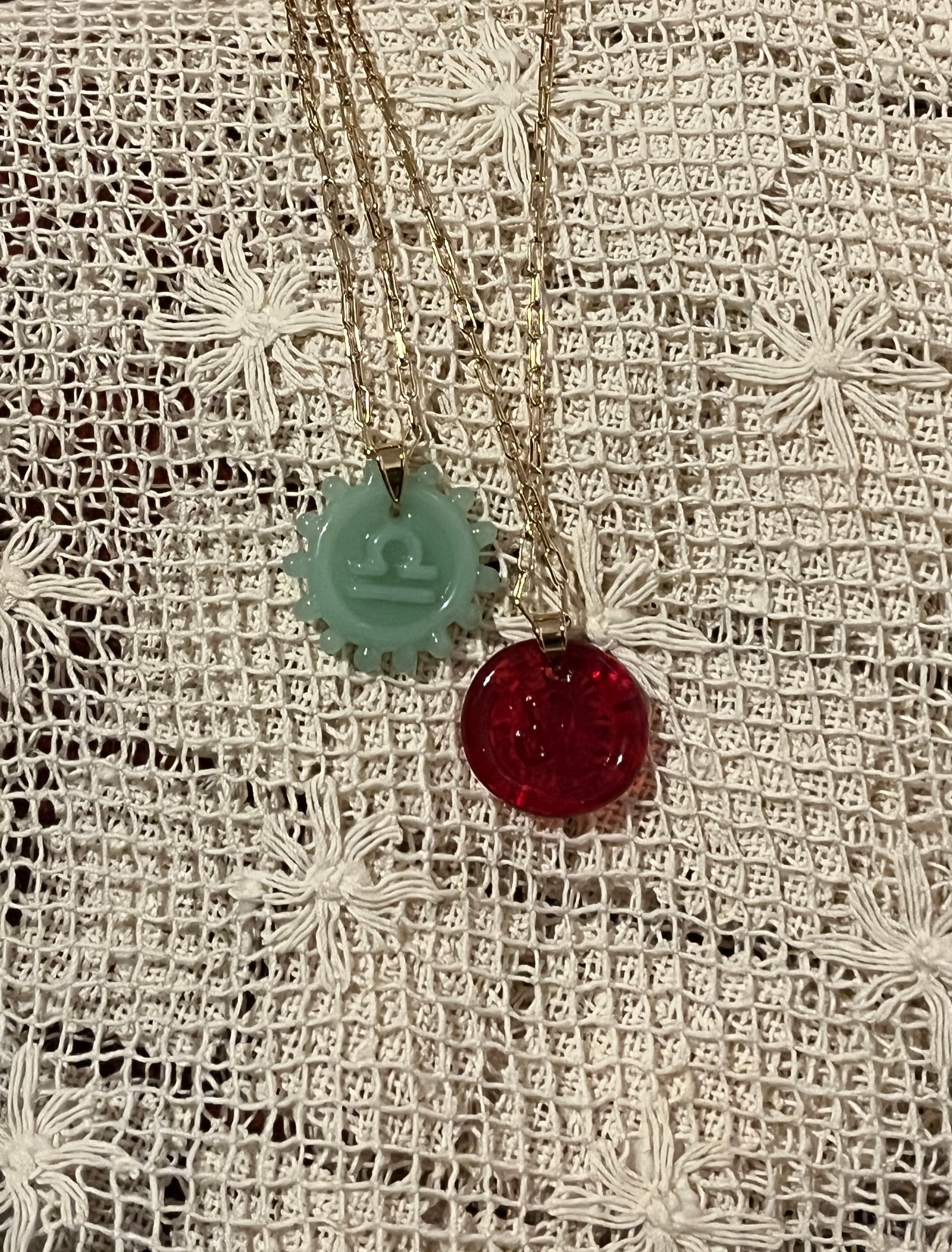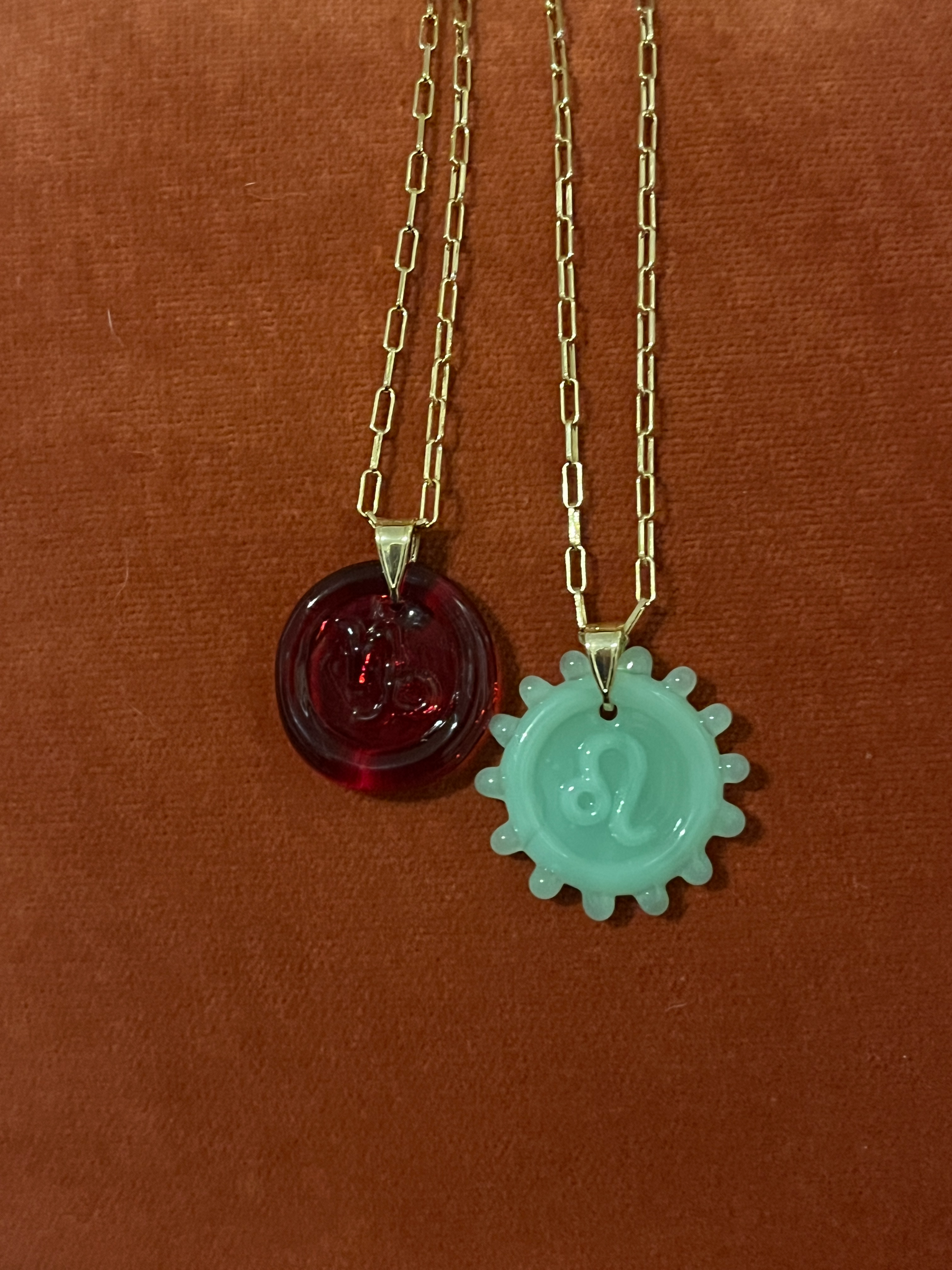 The stars have aligned for our latest collaboration with local Hudson Valley artist Roxann Slate. Introducing the Glass Zodiac Necklace, a stunner of a pendant coming in two variants and of course all the signs.