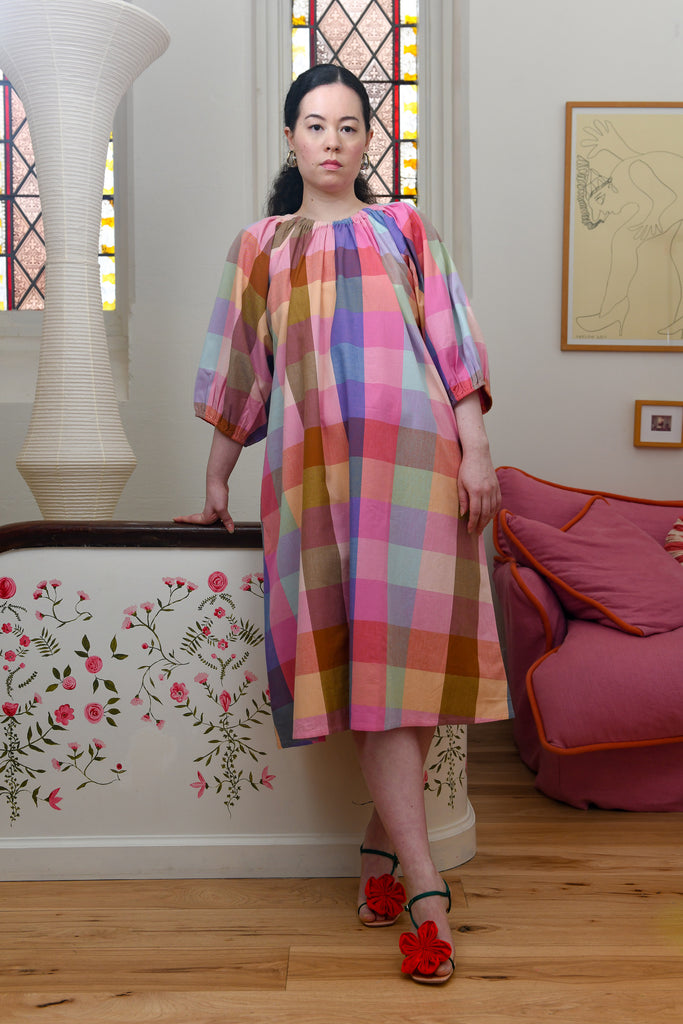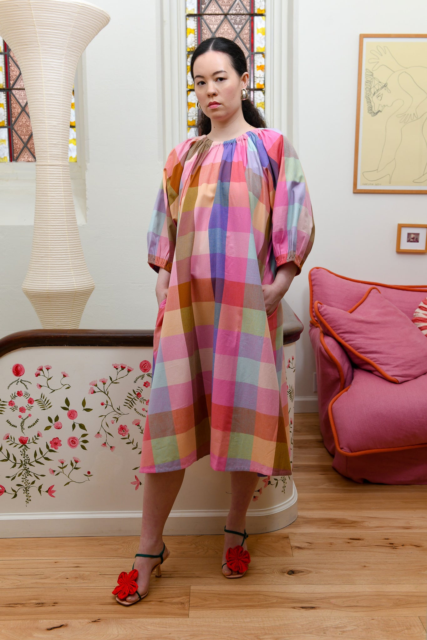 "The ballad dress has the most breezy, relaxed silhouette. And the gathers at the neckline make it feel so special. This dress is peak comfort."