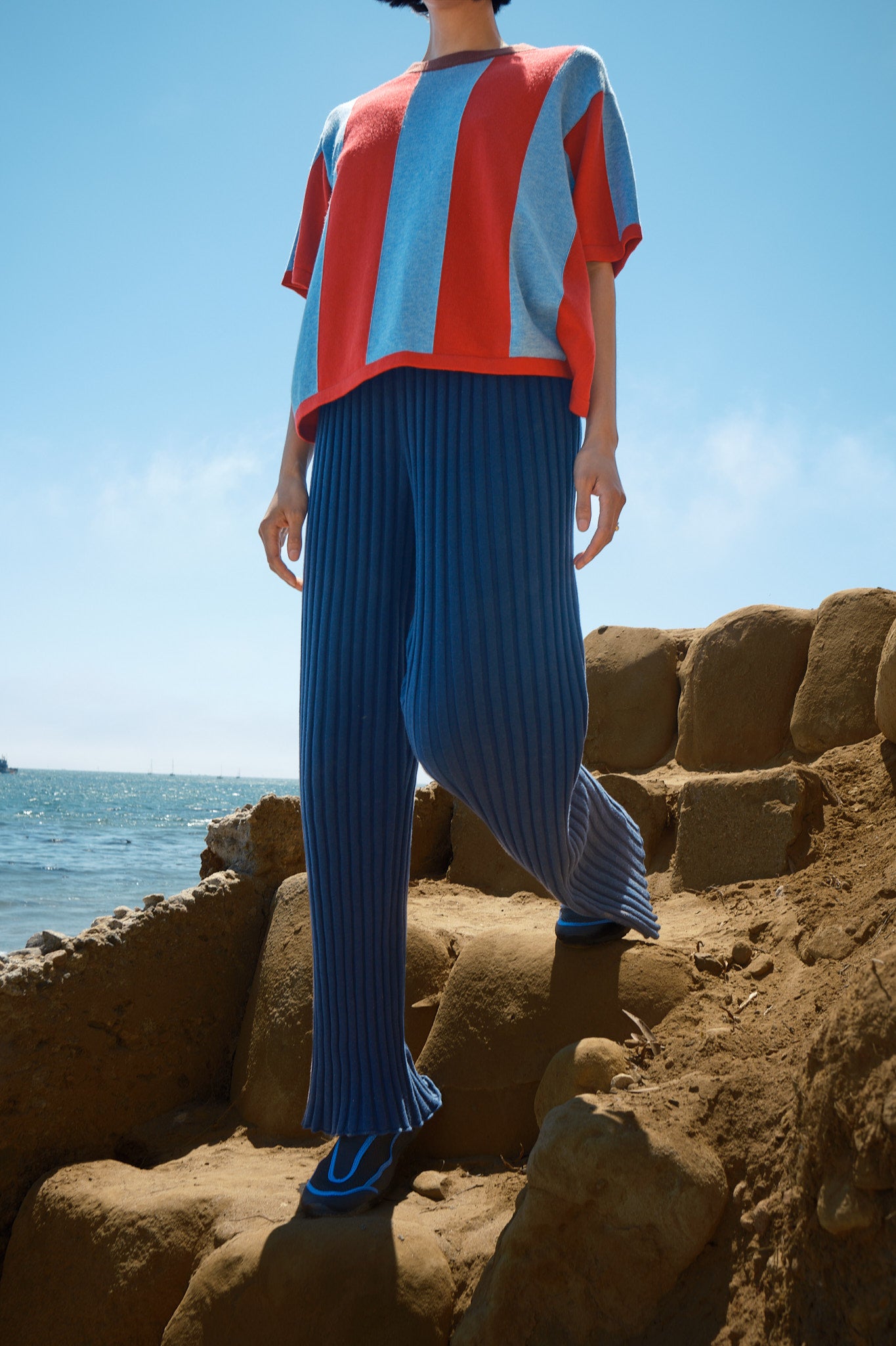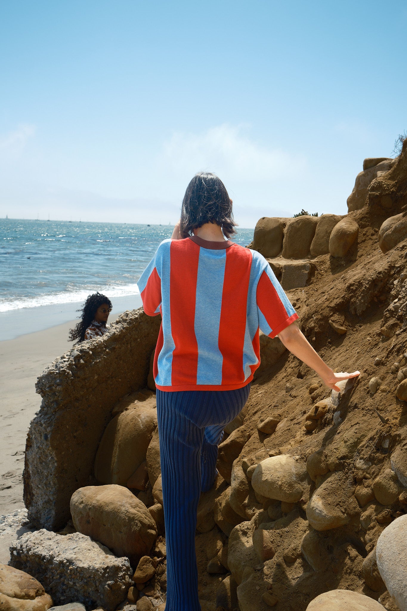 Sawyer Knit Vertical Stripe T Shirt - Cherry/Powder