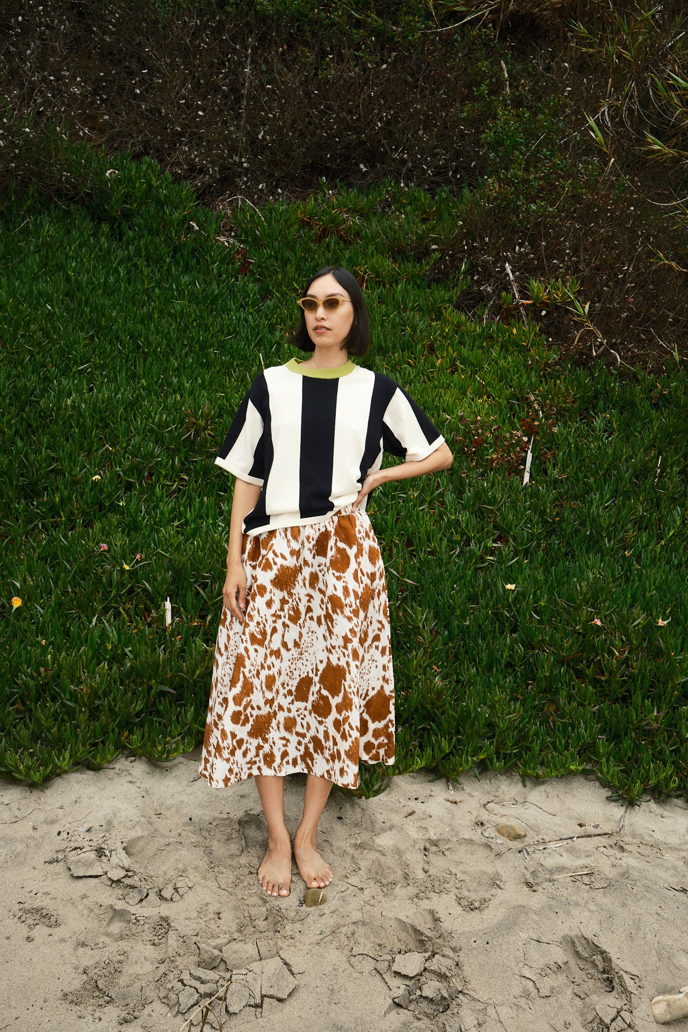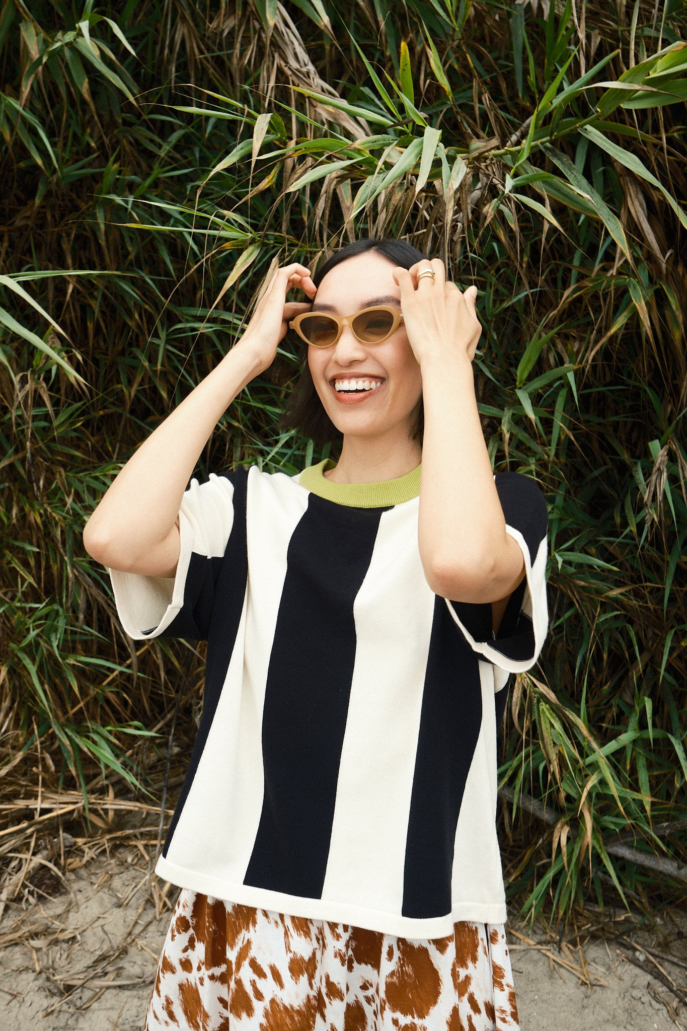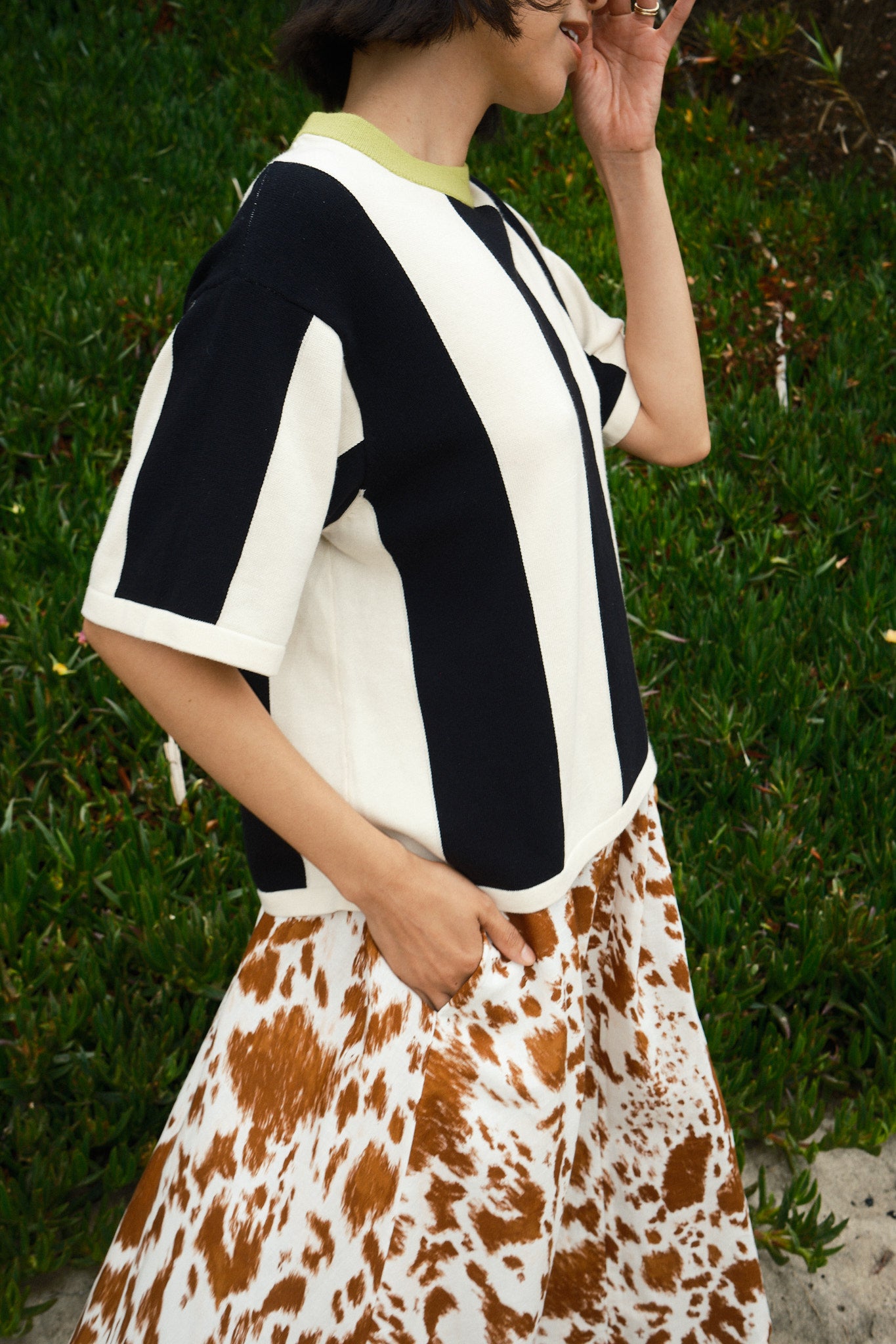 Sawyer Knit Vertical Stripe T Shirt - Ivory/Black