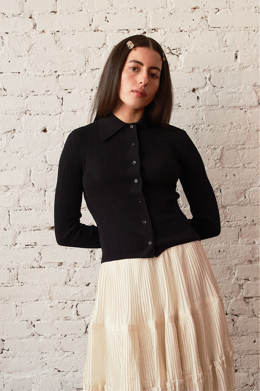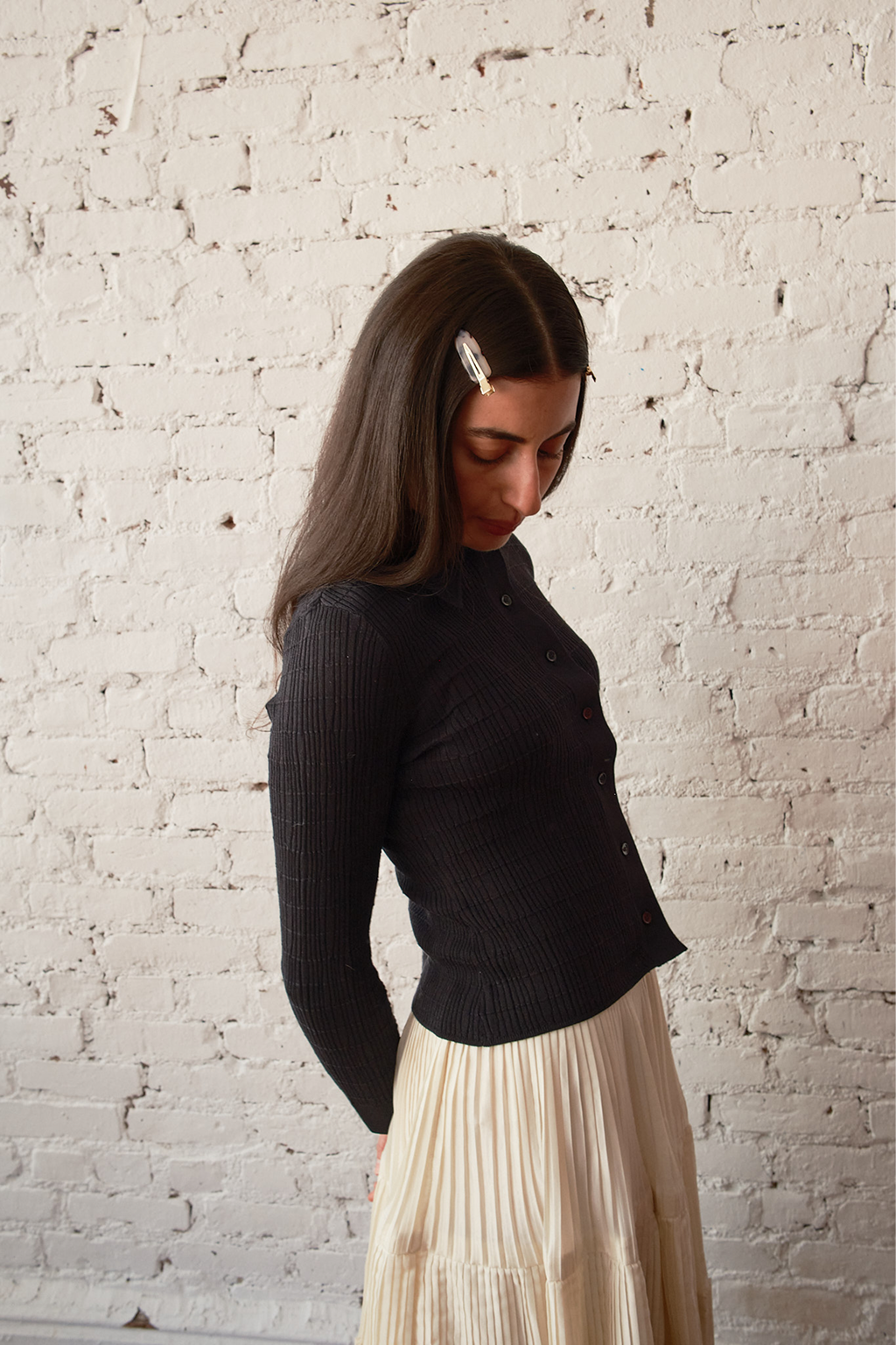 The 70s called and they want the Ruta Buttondown back. Inspired by 70s office wear, it’s a slim-fit blouse with lots of buttons and a collar-with-attitude. Easy to layer, easy to wear on its own. So we’re happily keeping it right here with us in the 2020s and beyond.
