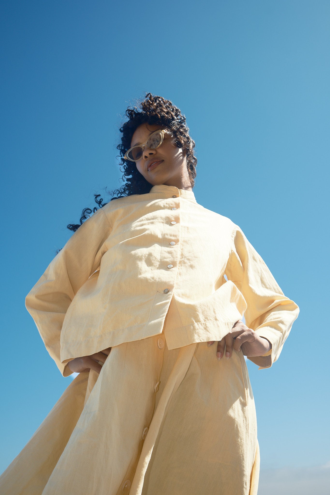 A refined take on a classic men’s shirt, the collarless Alpha Buttondown has a boxy cropped fit. It’s one of our staple silhouettes we come back to again and again and again.