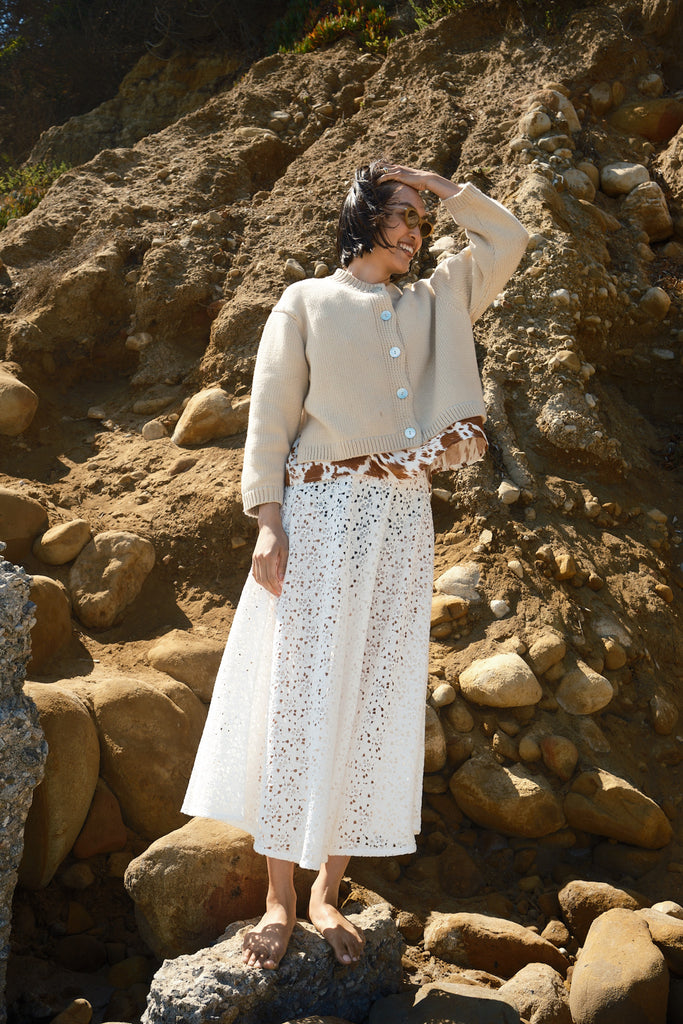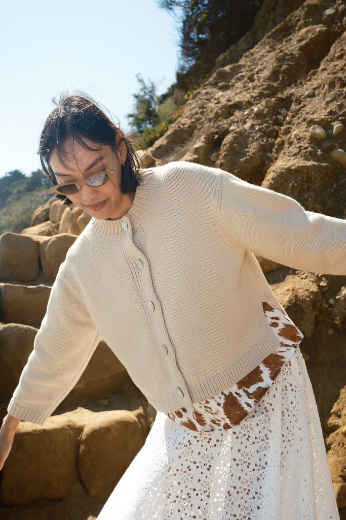 The 100% cotton version of our best-selling winter Sheba Cardigan, the Shiloh Cotton Cardigan is here. The Shiloh maintains the structure and chunkiness you all love so much, but in a suitable fabric for the warmer-weather seasons. Yes, you can look chic in a chunky sweater year-round without breaking into a sweat. To us, sweater season is a state of mind.