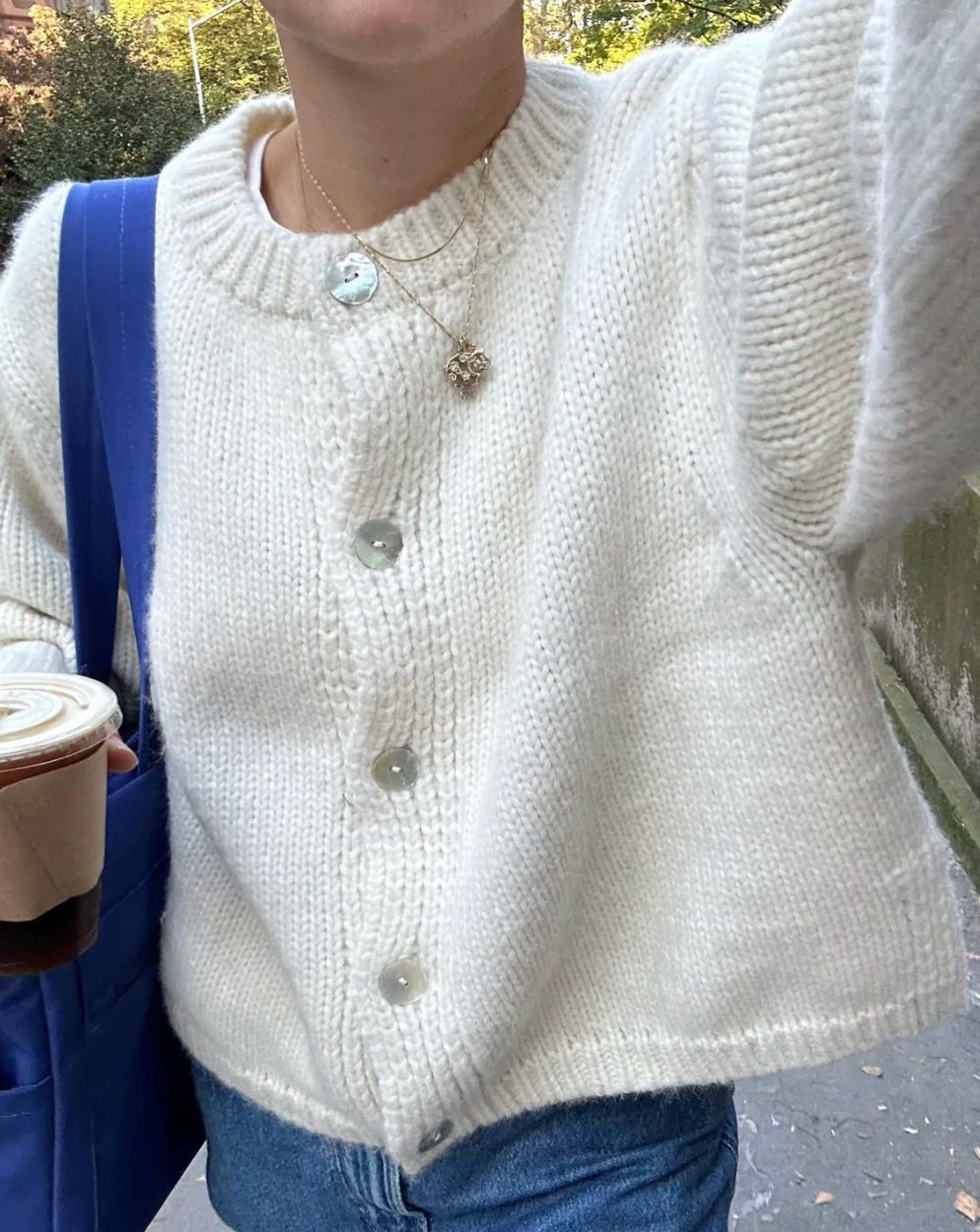 The chunky, slightly fuzzy Sheba Cardigan Sweater serves major grandma vibes in today’s modern color palette. Its relaxed, boxy fit makes it ideal for layering in the chilly months.