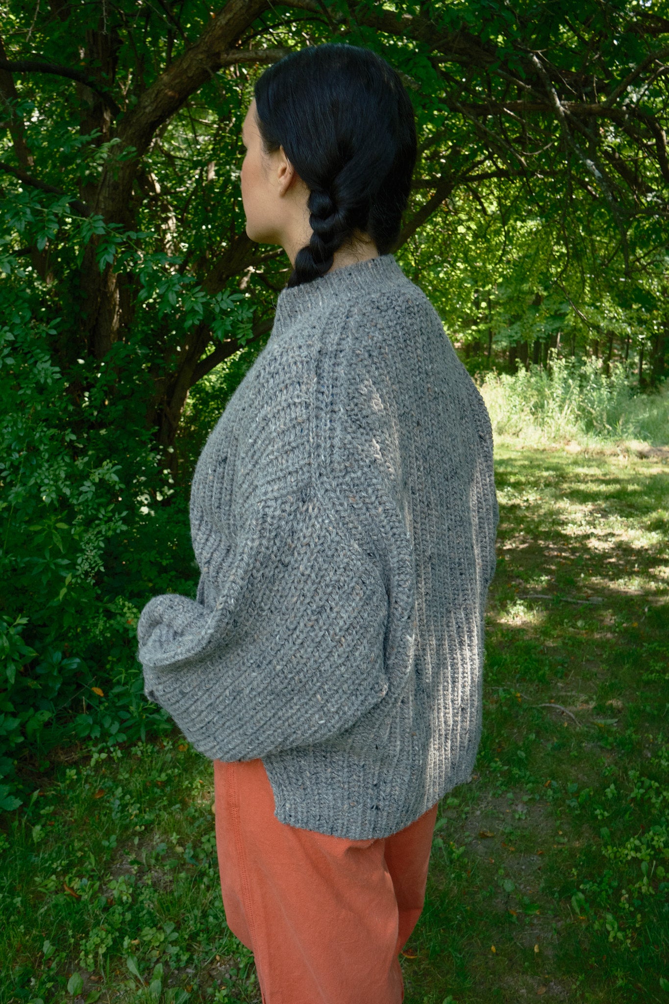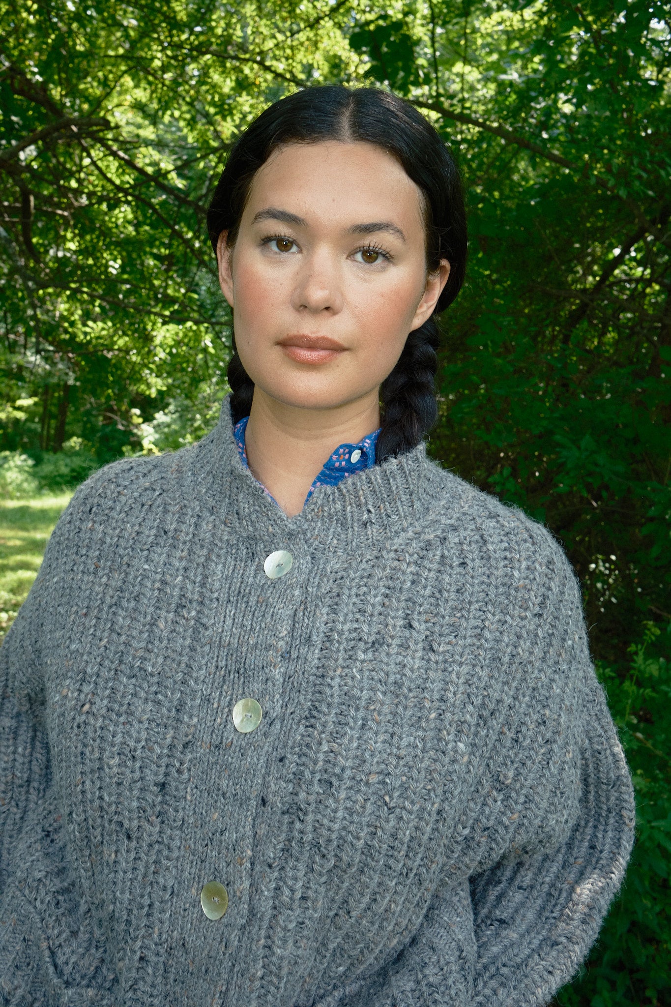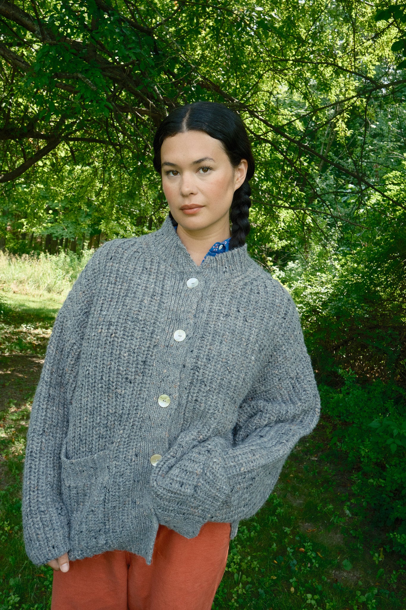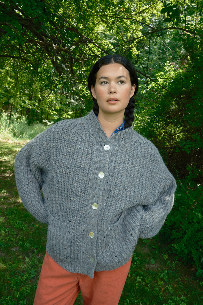 The Sybil Ribbed Cardigan is a big chunky blanket of a sweater, featuring oversized pockets (good for snacks) and our favorite shiny pearly buttons.